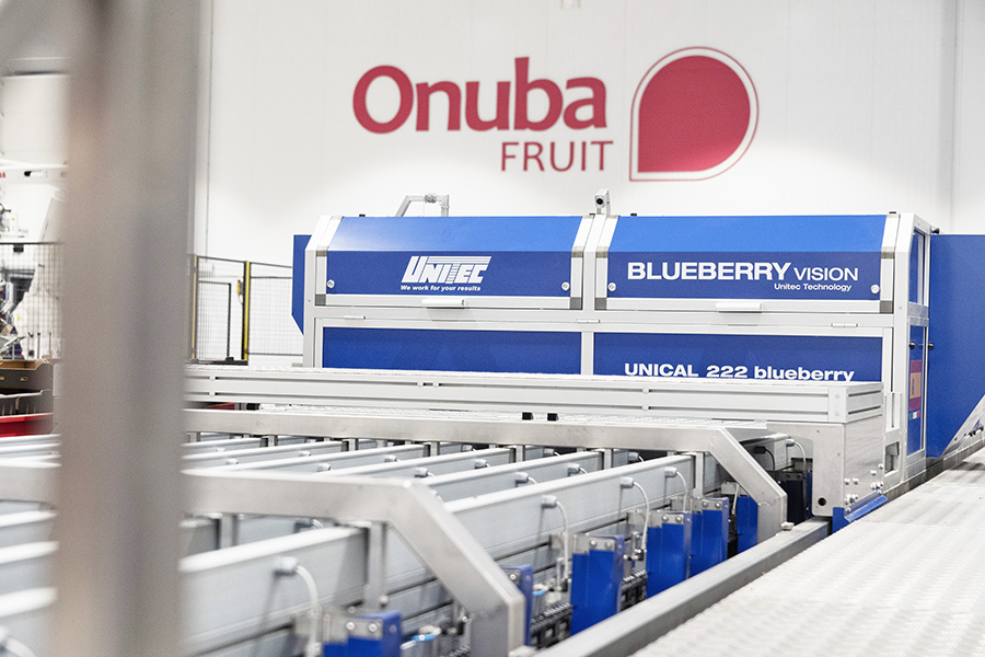 Coophuelva si è affidata a UNITEC, acquistando un impianto a 32 canali – 2 calibratrici da 16 canali l’una – equipaggiato con la tecnologia Blueberry Vision 2, che ha fatto di lei una centrale con uno degli impianti per la lavorazione e la classificazione della qualità dei mirtilli più grandi al mondo, in grado di processare circa 3.000.000 di frutti all’ora, numero medio che varia in funzione del calibro dei frutti.